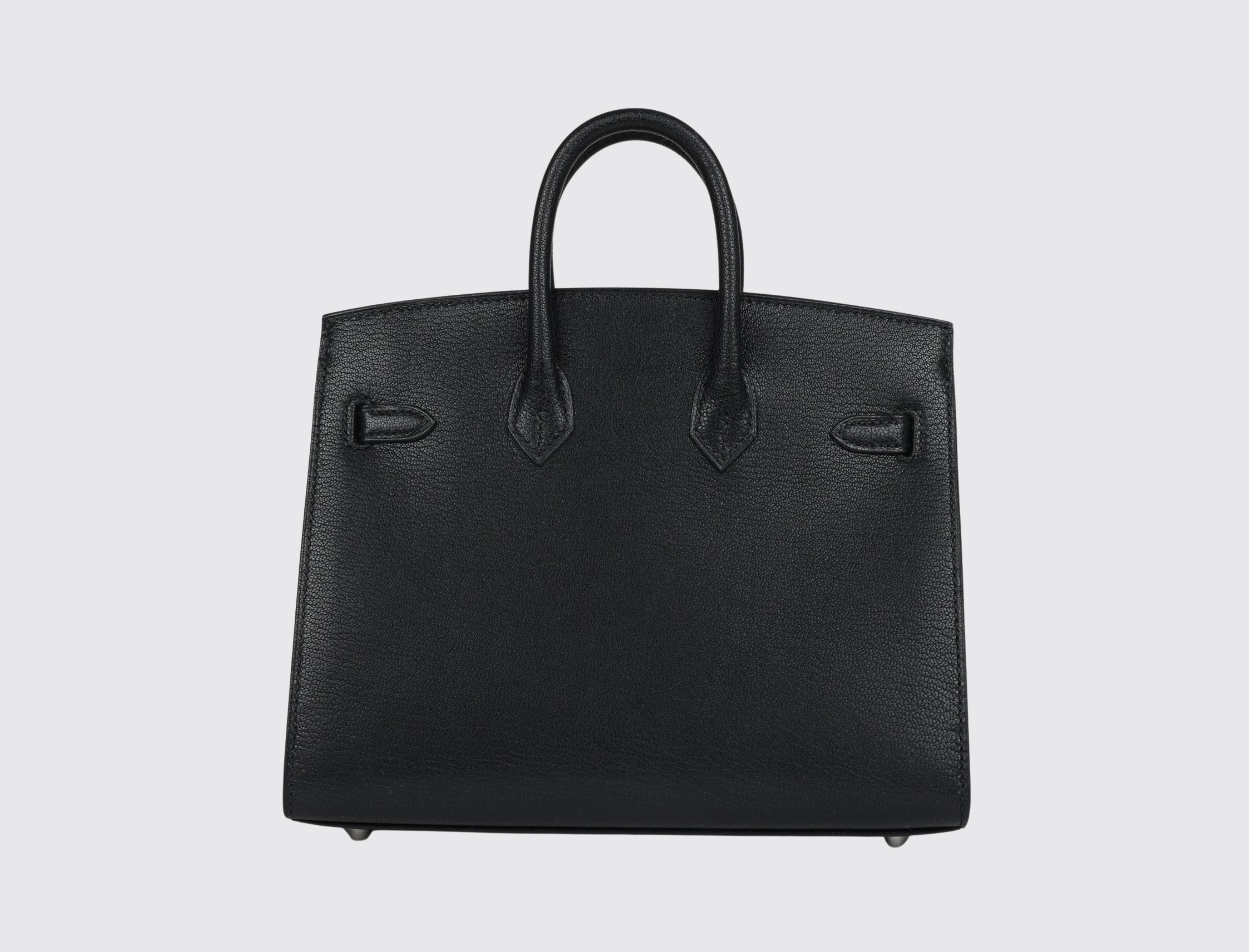 The Hermes Birkin 20 is a compact yet iconic symbol of luxury and craftsmanship. In the sophisticated noir color, this bag offers a chic and versatile look, perfect for both day and evening wear.