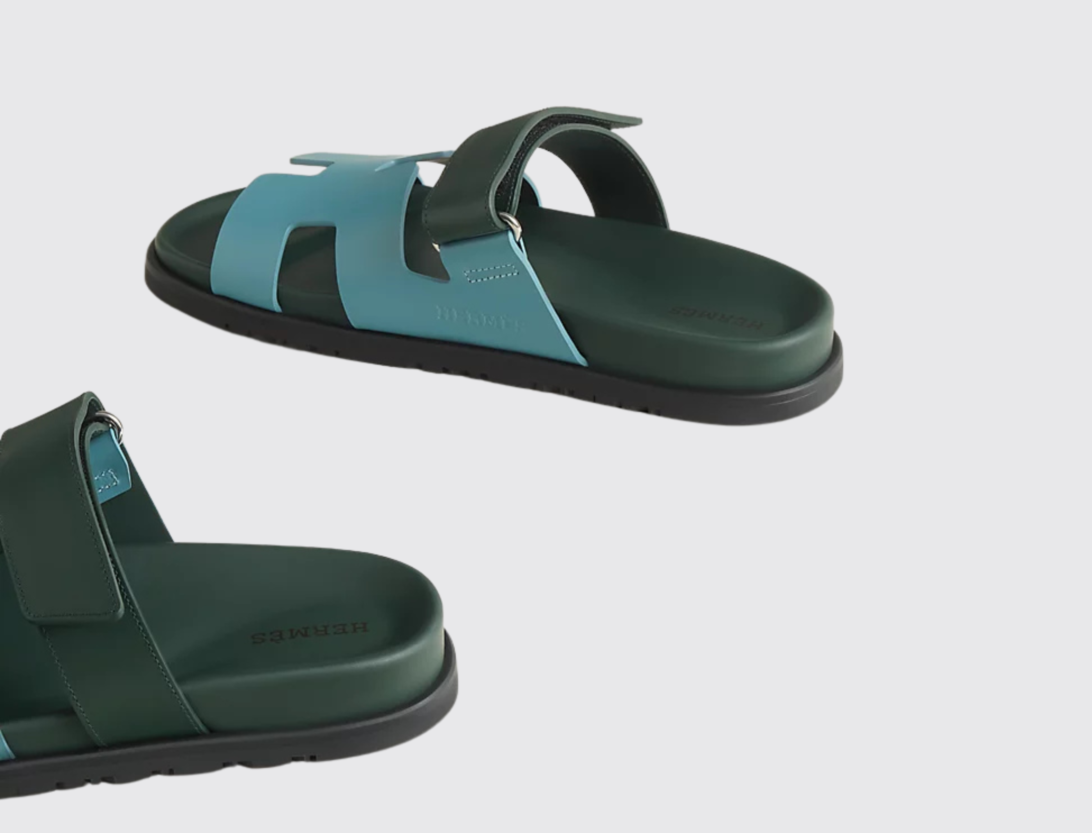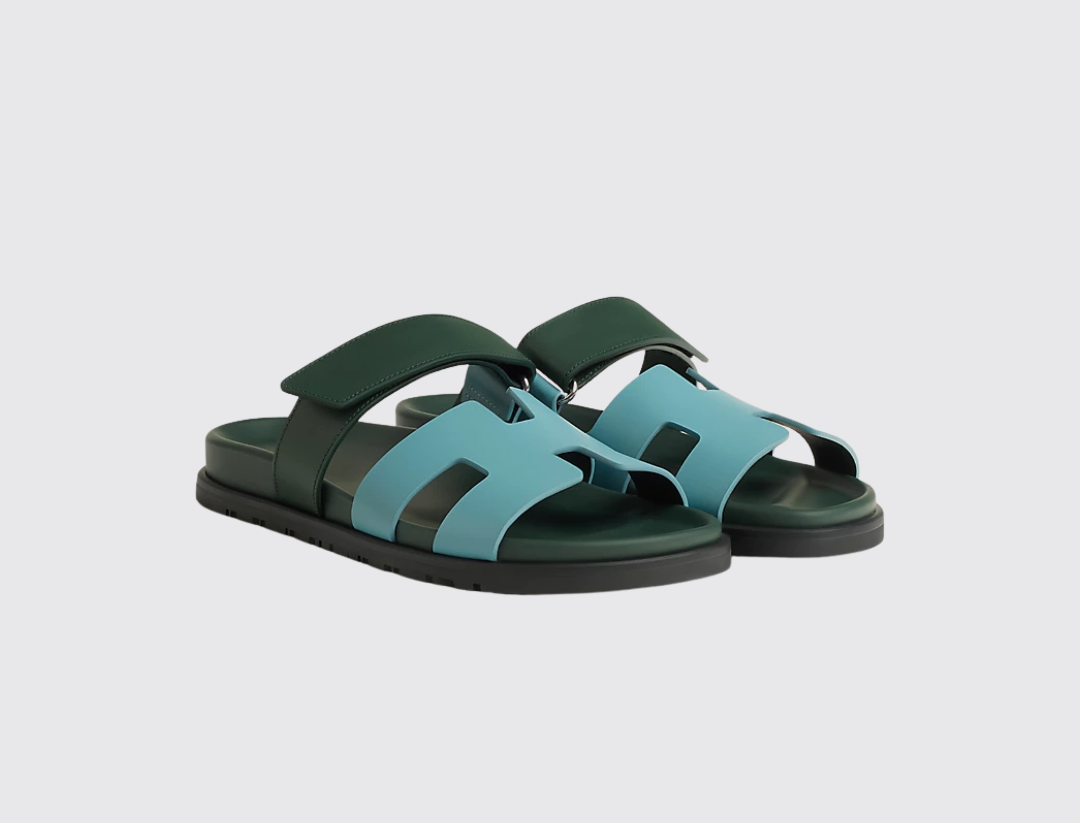 Chypre Sandals in Bleu Citadin/Vert Bouteille