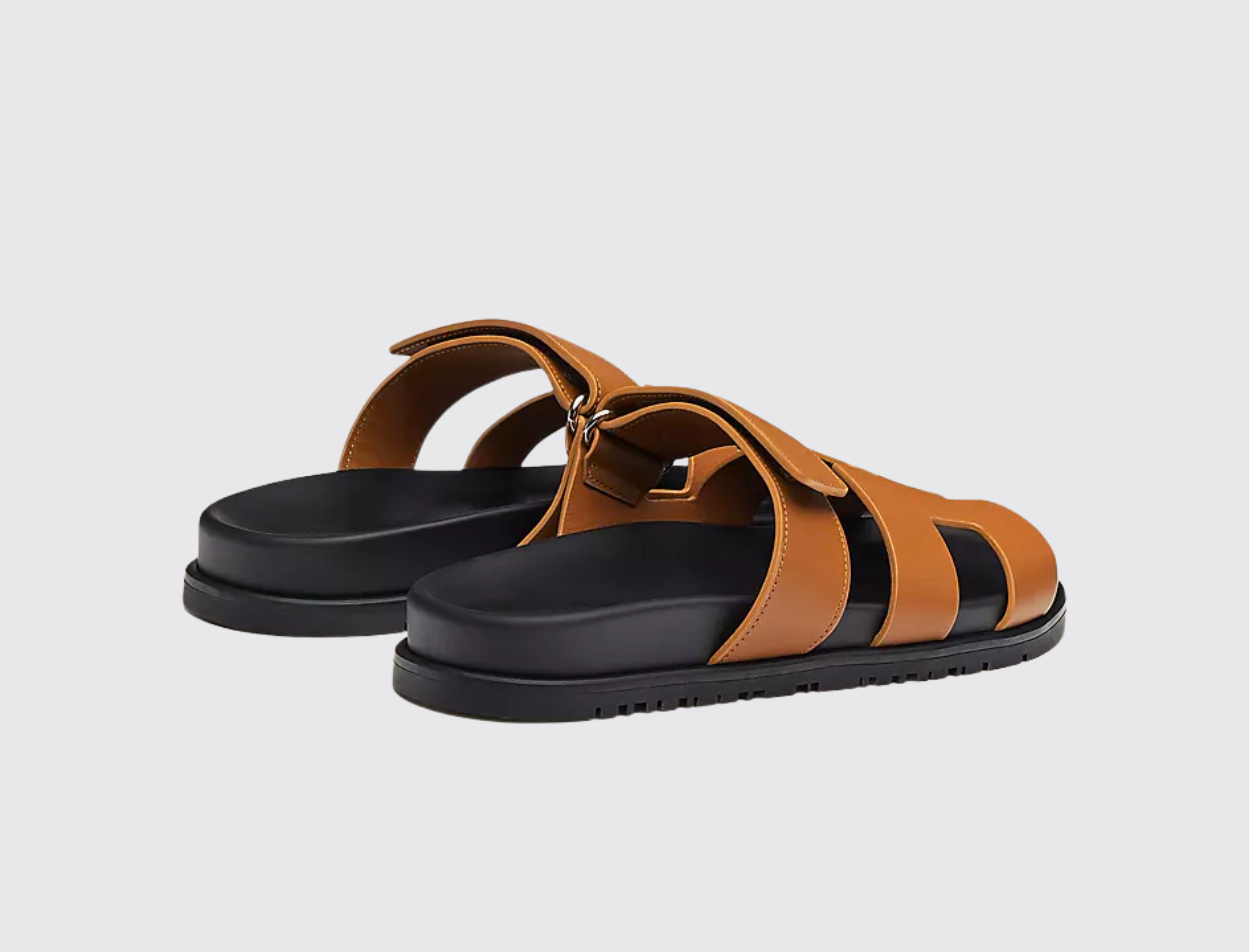 Techno-sandal in calfskin with anatomical rubber sole and adjustable strap. A sleek design for a comfortable and casual look.