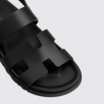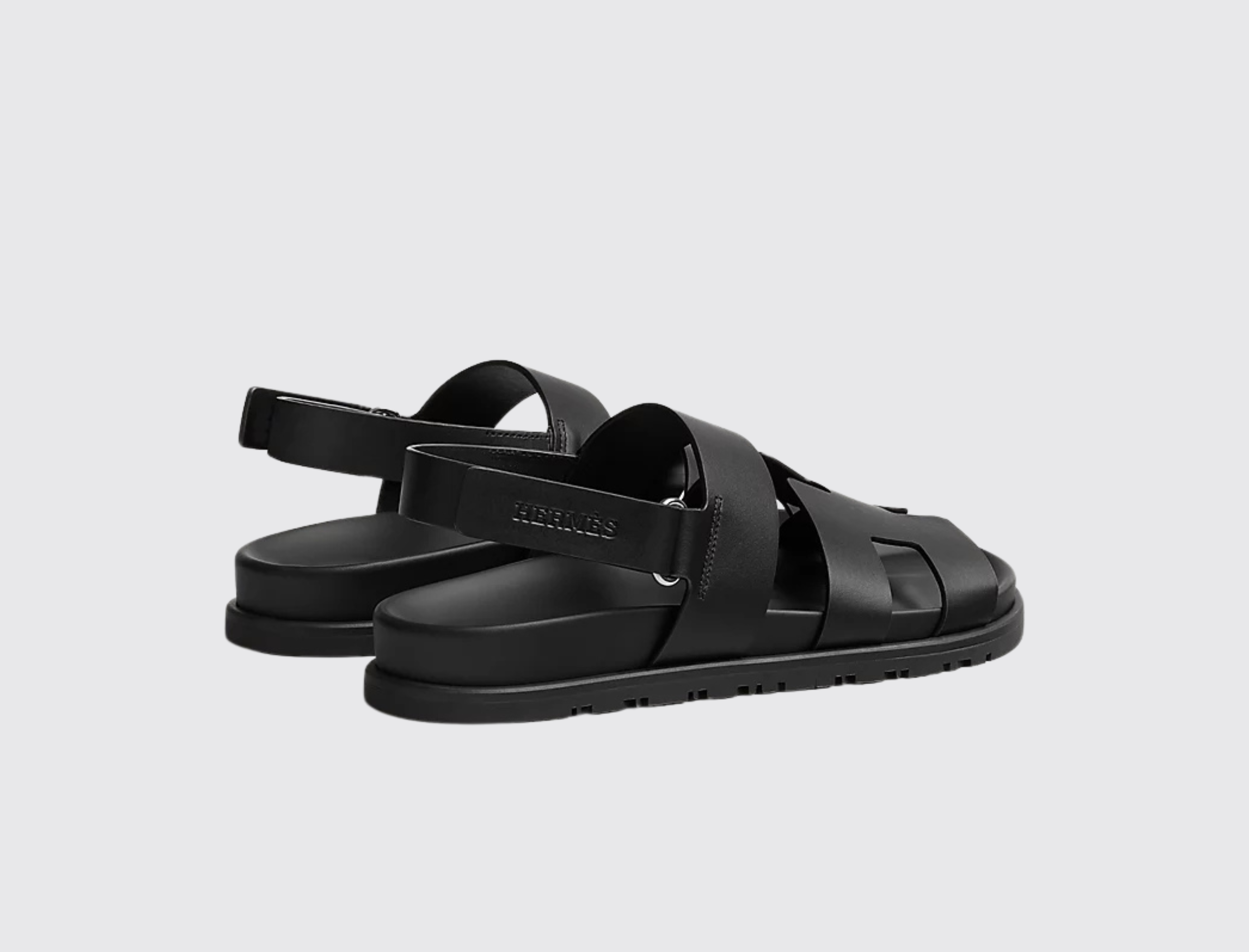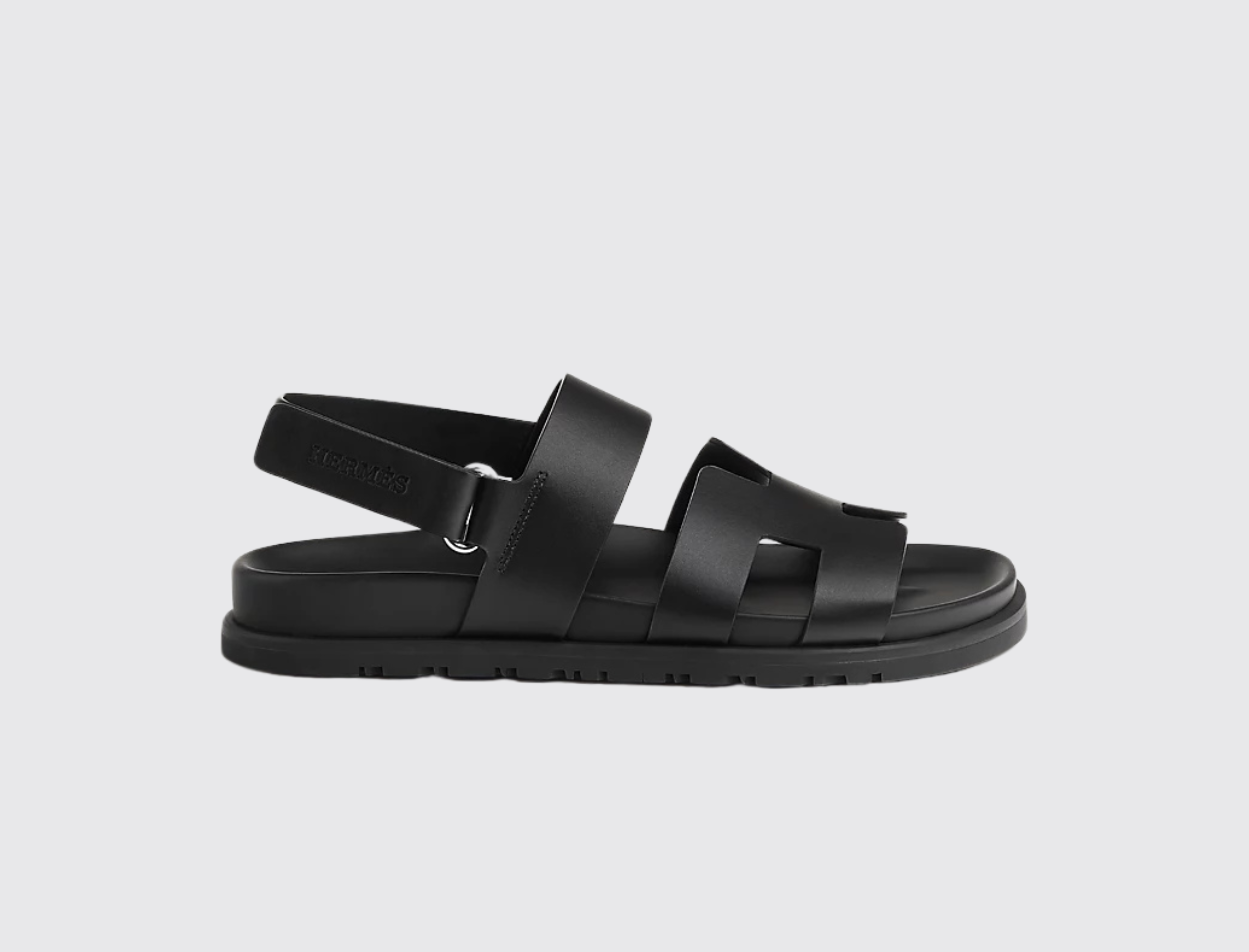 The Hermès Genius Sandal features bold leather straps, a contoured sole, and clean lines—offering a modern, architectural take on everyday comfort.