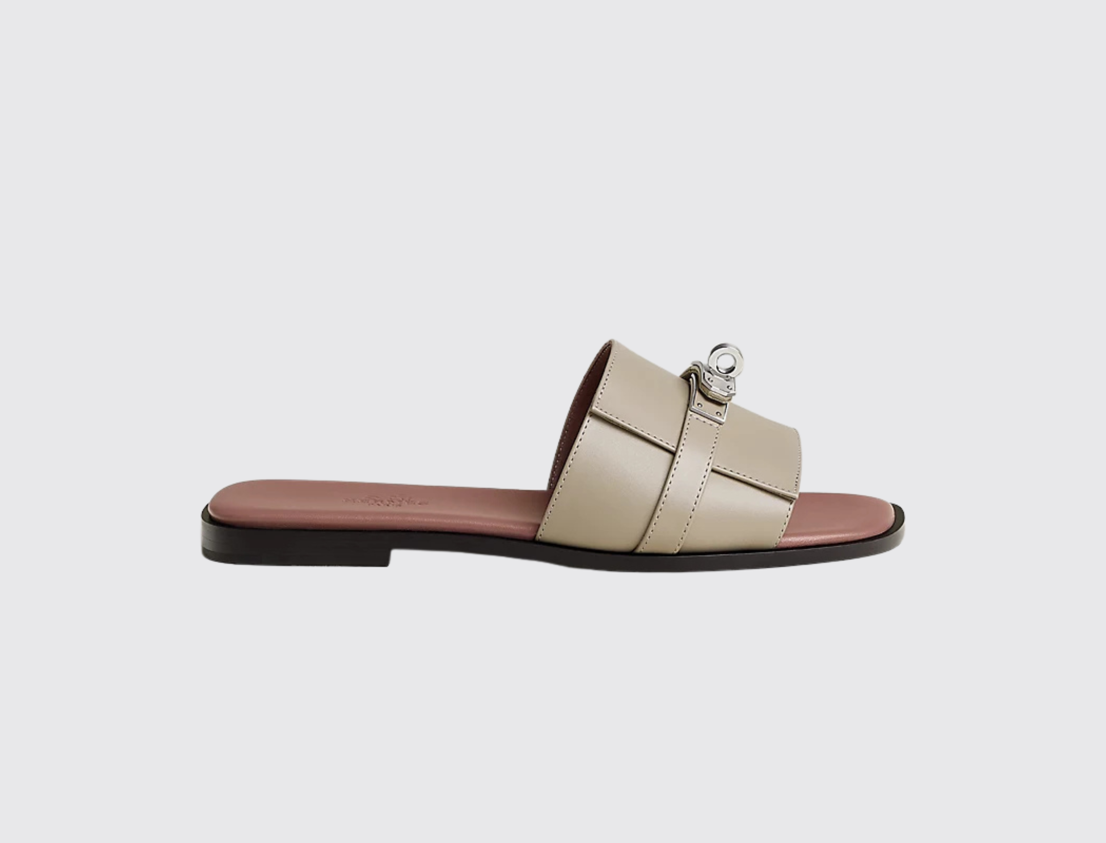 The Giulia sandal has a minimalist yet sophisticated design, featuring the signature Kelly buckle.